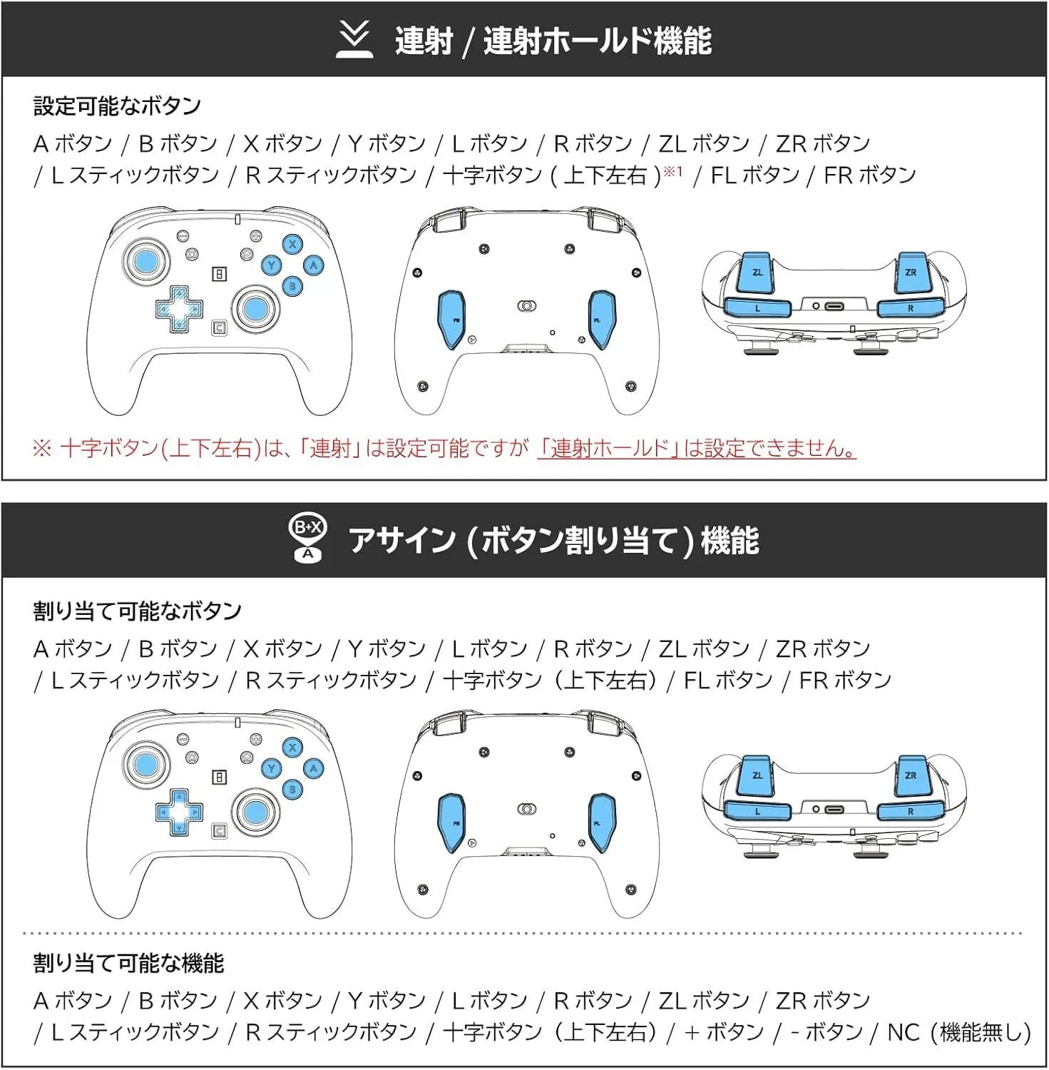 按鍵分配(重新映射)-複製、交換或停用按鍵功能。支援雙鍵同時分配(例如,將“B + X”對應到 A 鍵)。