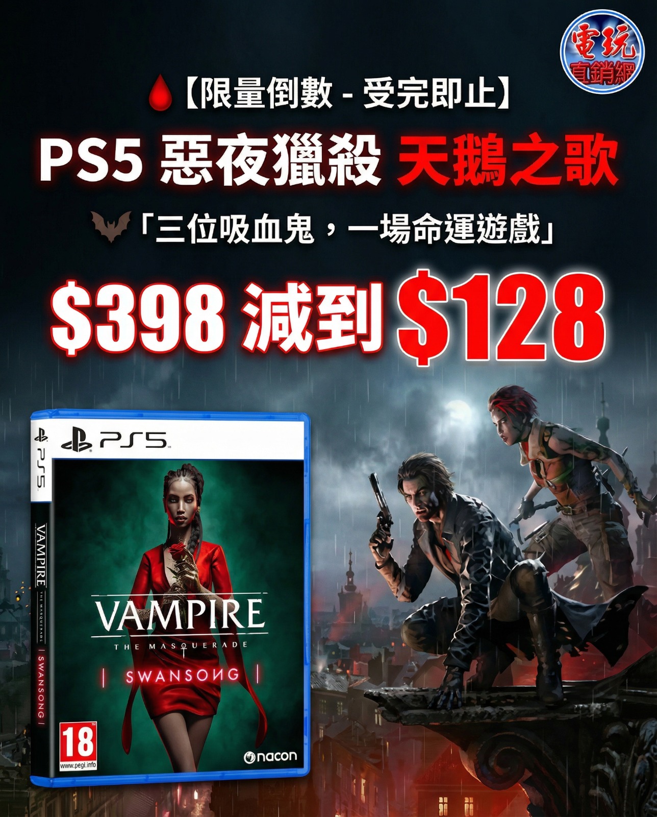 《吸血鬼:化妝舞會-天鵝之歌》是一款由 Big Bad Wolf Studio 開發、Nacon 發行的敘事冒險角色扮演遊戲,基於著名的 桌上角色扮演遊戲《Vampire: The Masquerade》 世界觀。