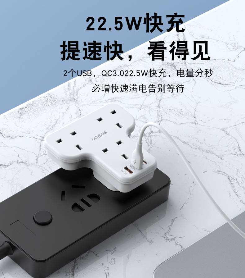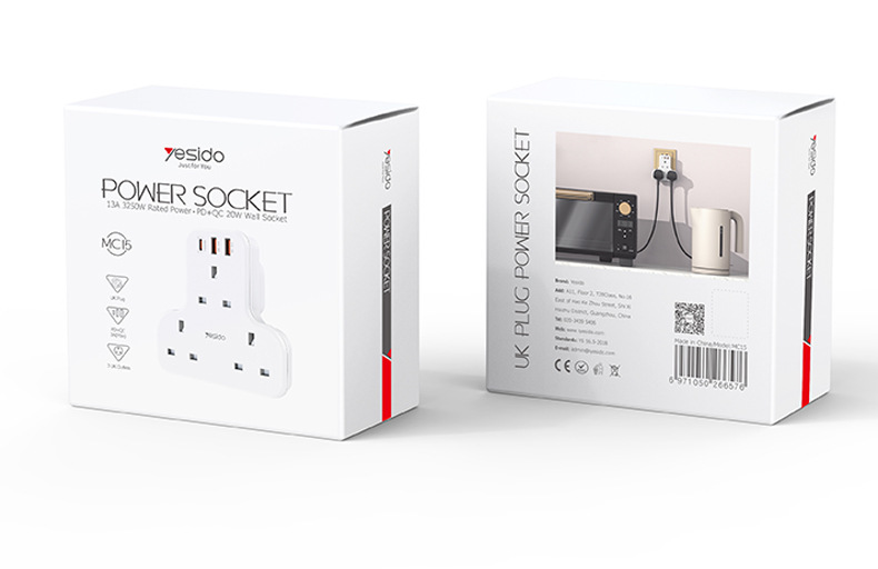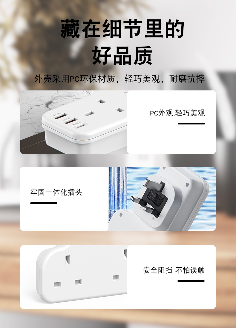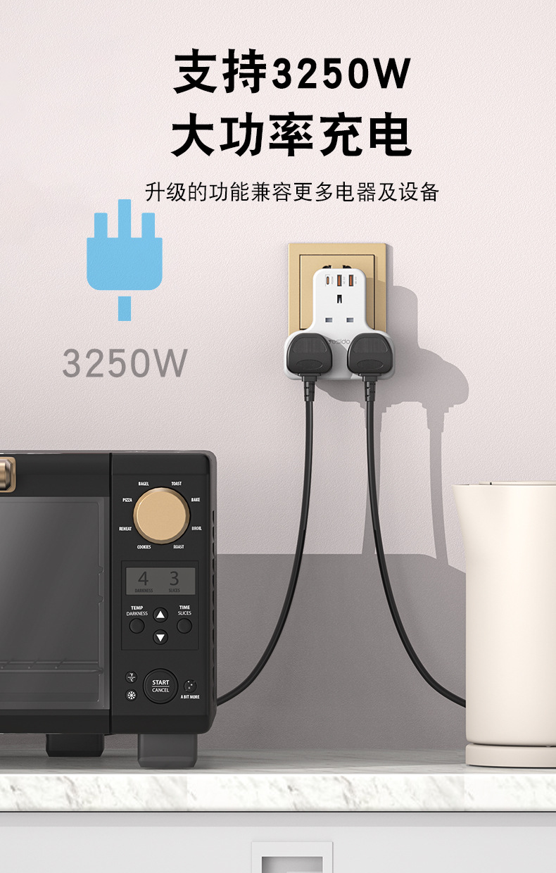 3250W排插,英規,拖3個英規加1個TC快充(20W)2個QC3.0快充,