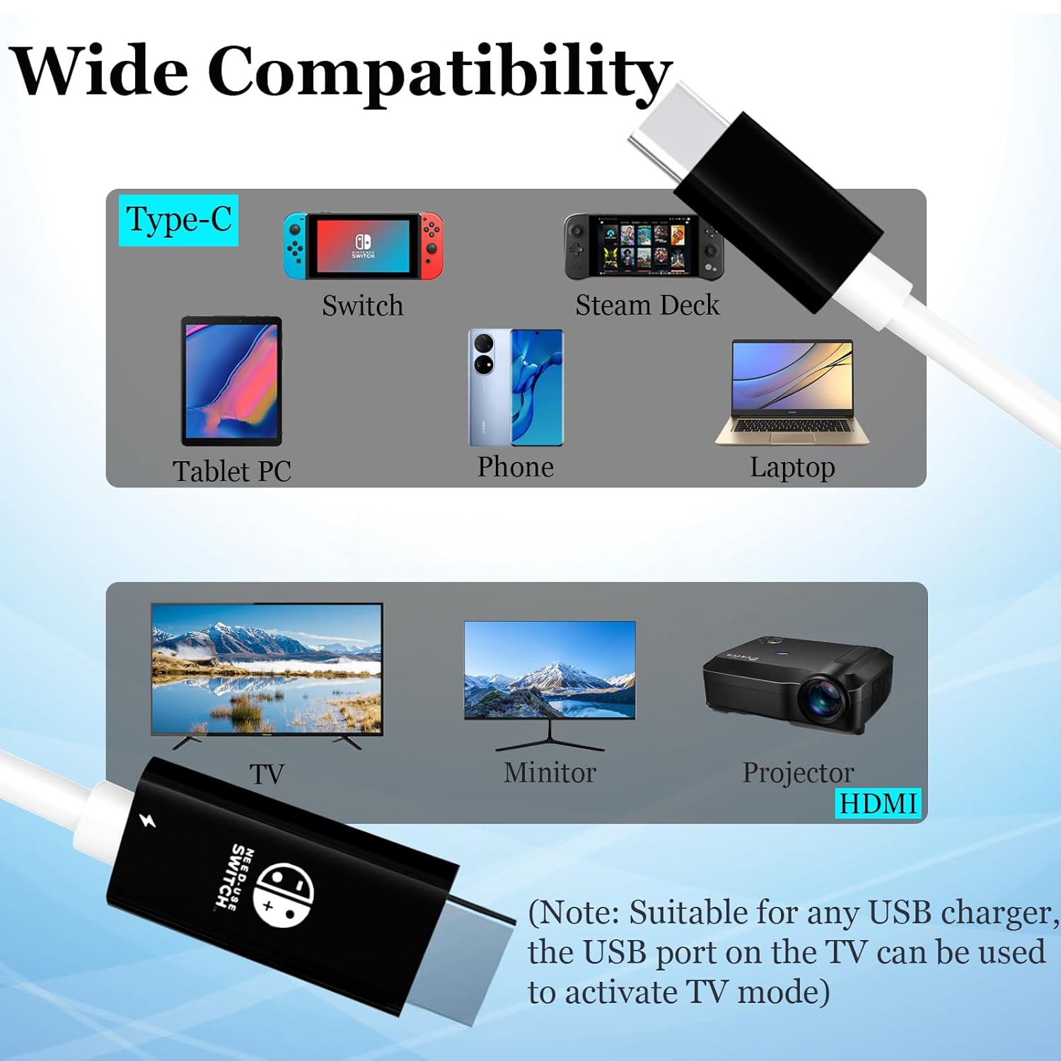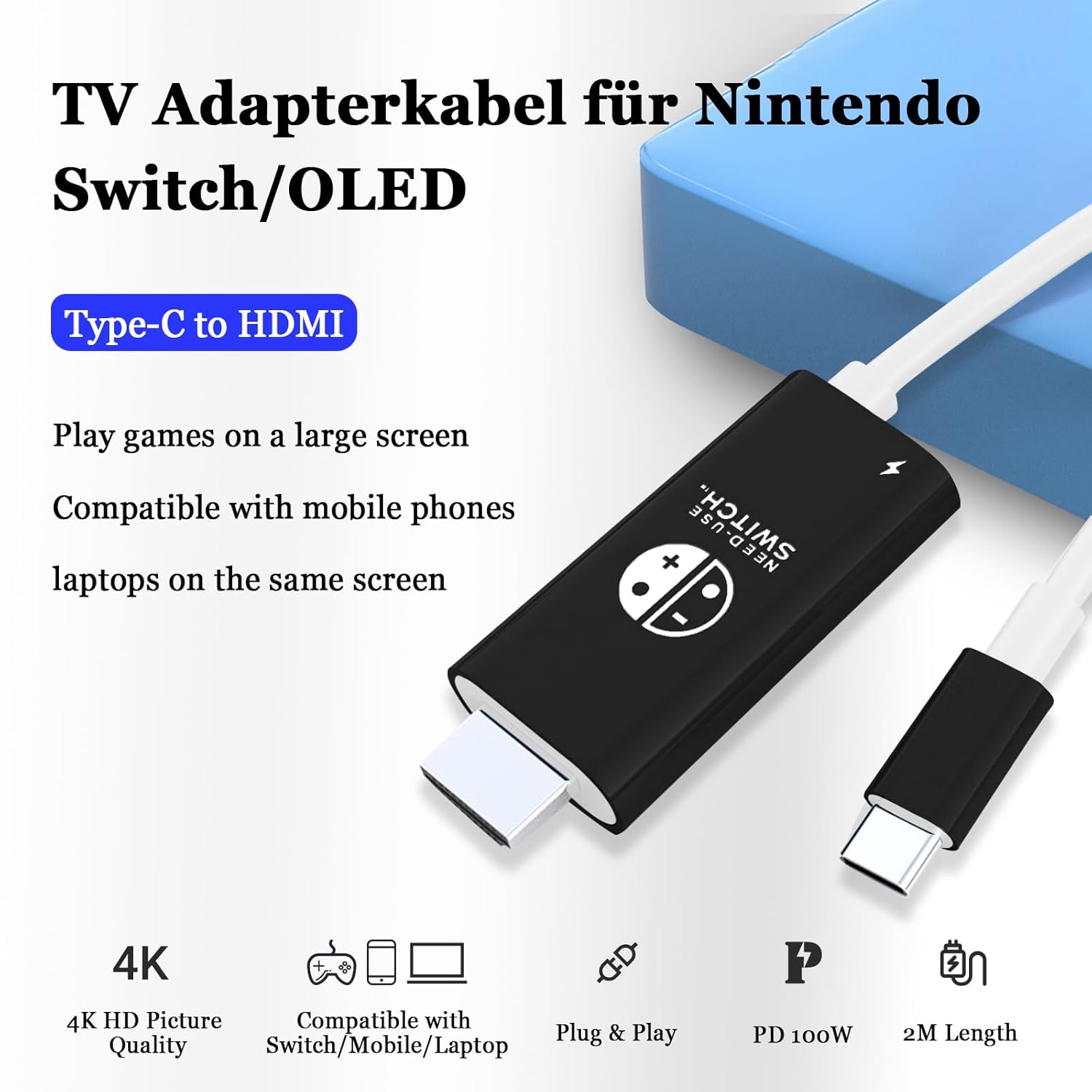 除 Nintendo Switch 外,也可為 Type‑C 手機、平板、電腦等設備充電。